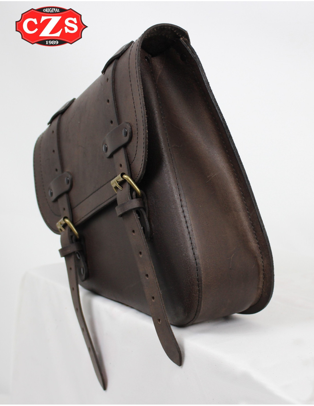 Rindsleder. Er kann auf beiden Seiten des Motorrads austauschbar platziert werden.
