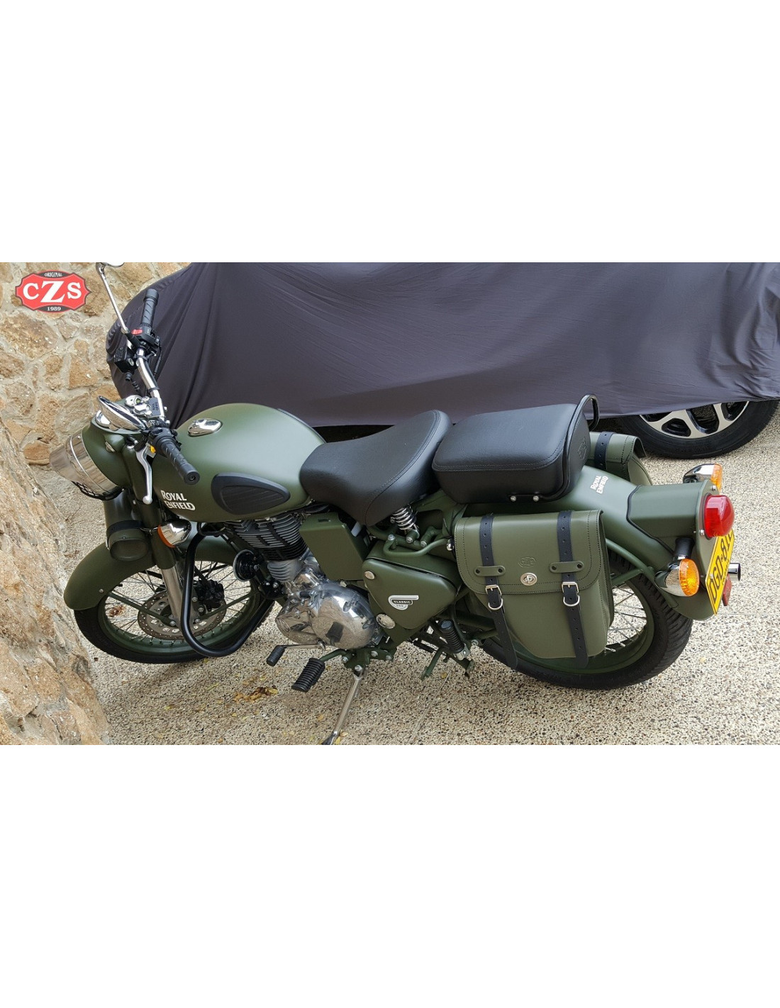 Anpassungsfähig für Royal Enfield - Battle Green 350/500cc, rindsleder.