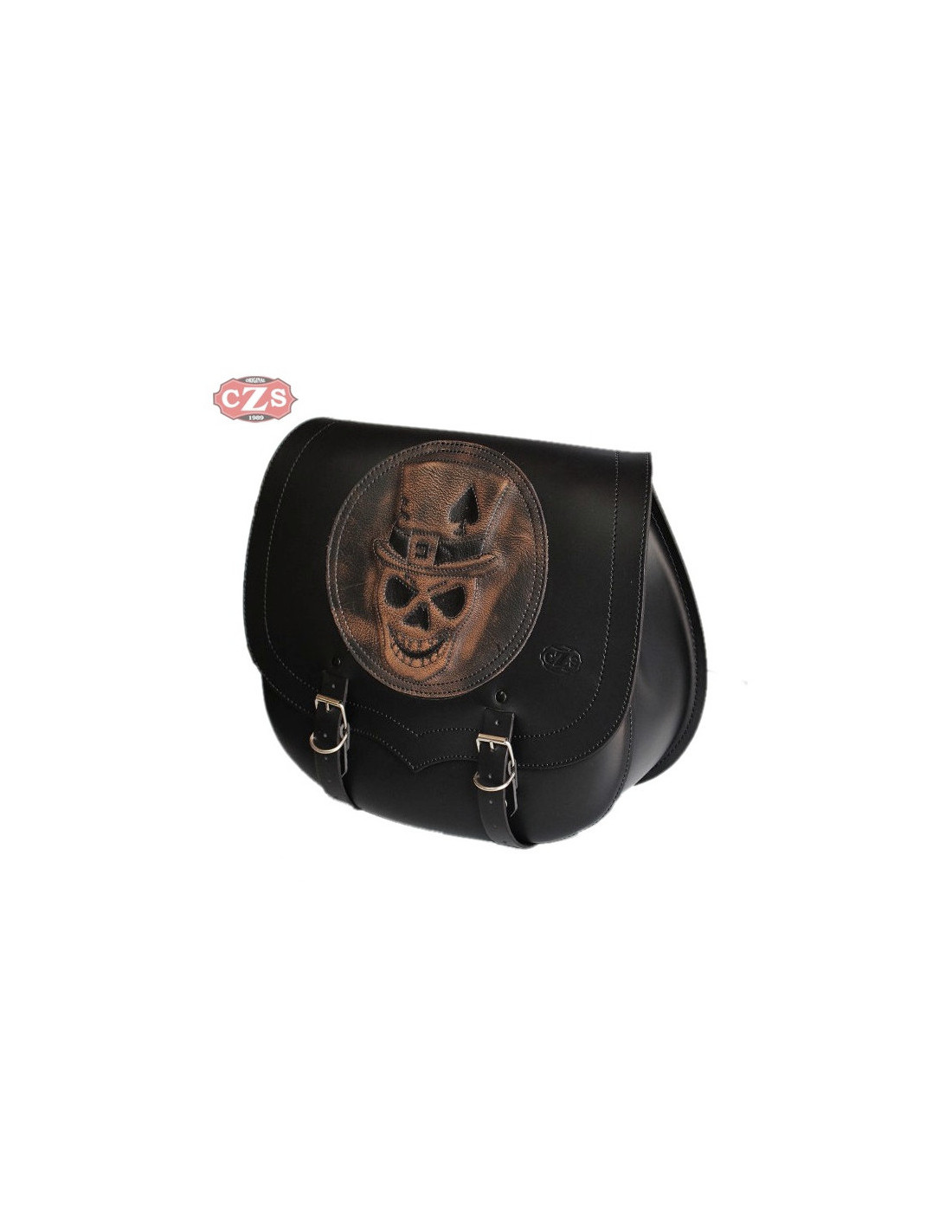 „SPARTA Skull Hat“ Leder-Satteltaschen für Sportster Harley Davidson mit Stoßdämpferloch