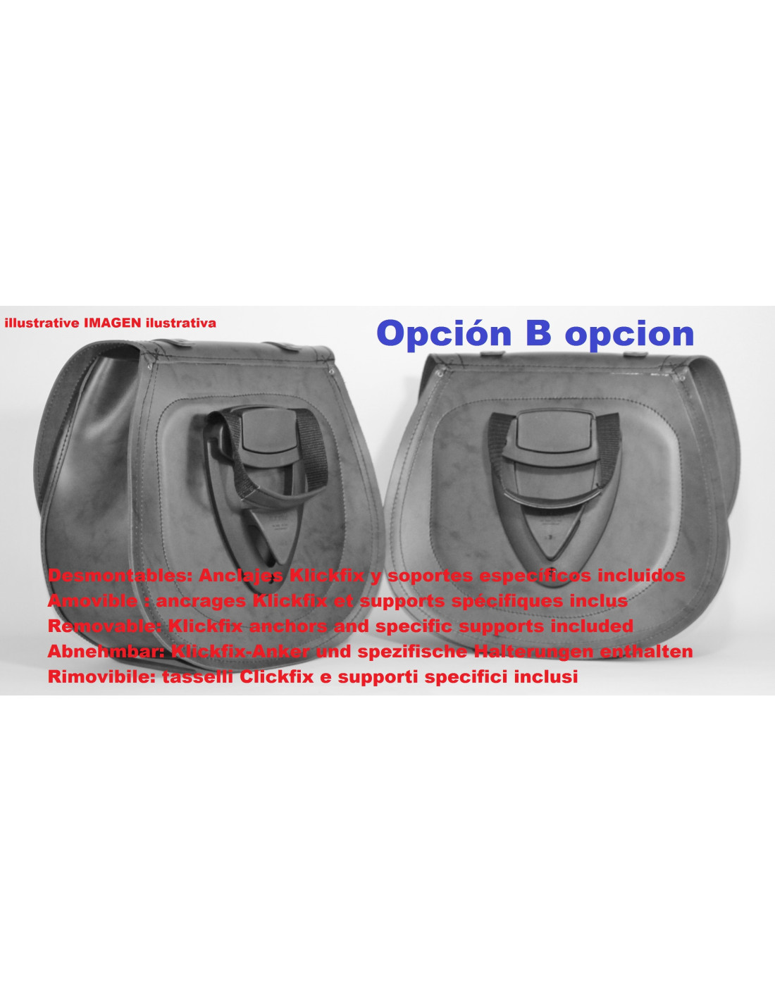 Eigenschaften: Rückseite der starren Satteltaschen vorbereitet für endgültige Befestigung oder abnehmbar.