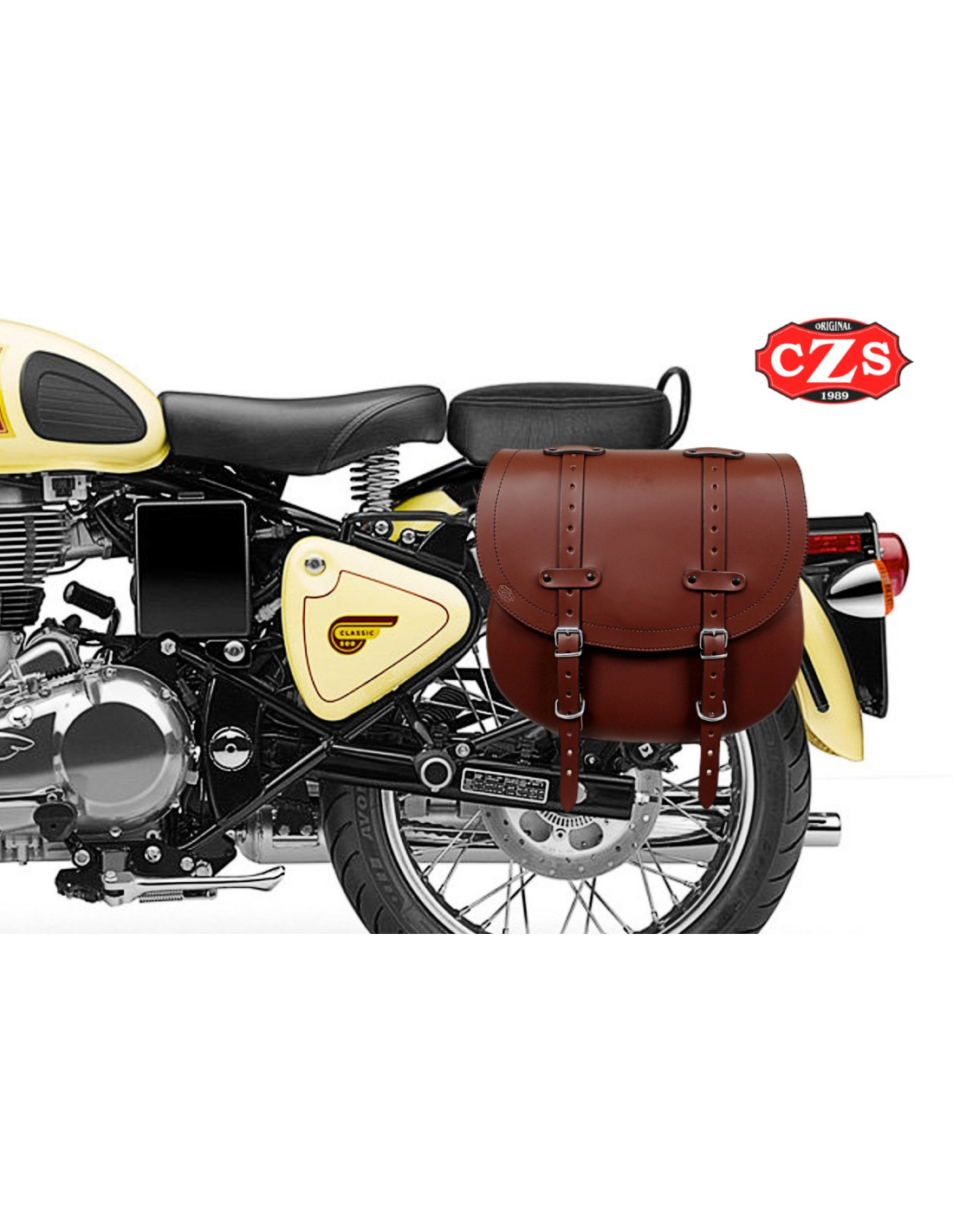 - Alforja para Royal Enfield Bullet Classic. Lateral Derecha mod, BANDO Básica. Marron Cuero
