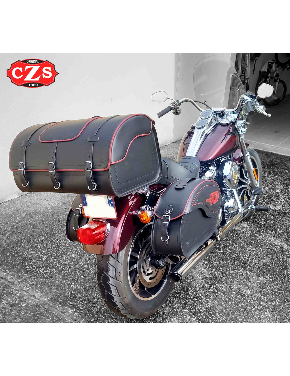 Custom Z SpainBIG-FOOT leather motorcycle trunk with burgundy profiles