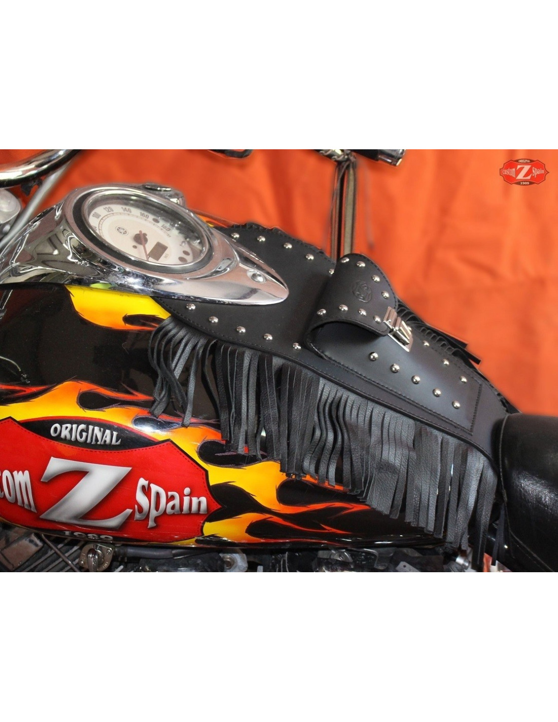 Leather tank panel for Kawasaki Vulcan mod, ITALICO Classic with Fringes