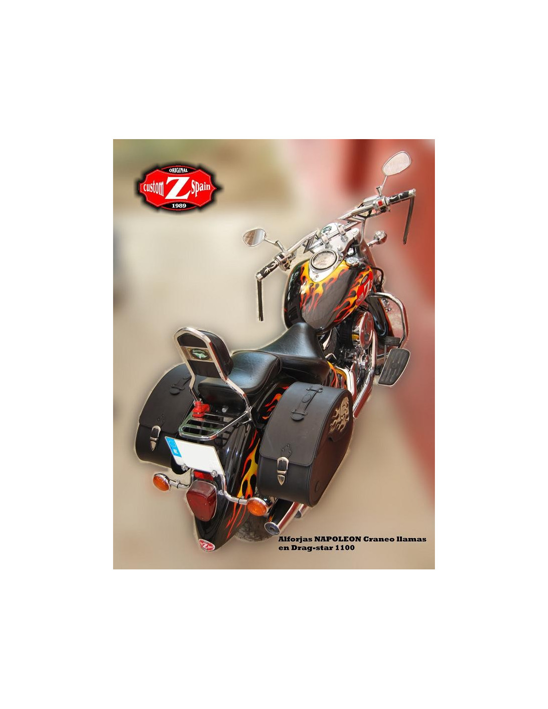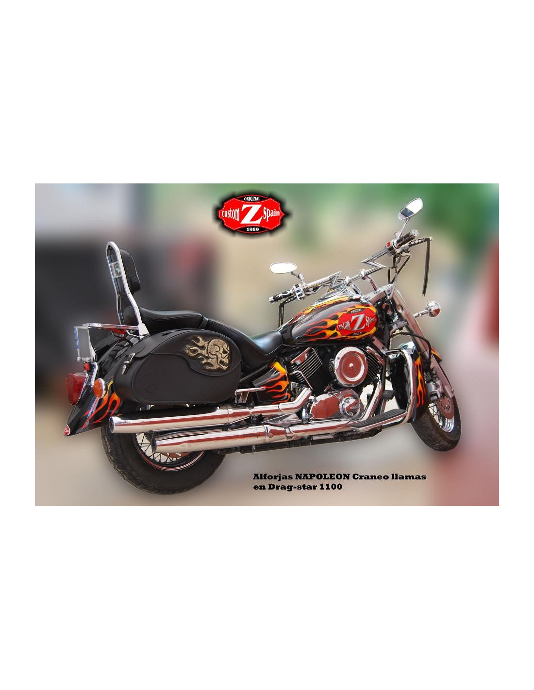 Rigid Saddlebags mod, NAPOLEON - Skull on fire (red thread) - UNIVERSAL