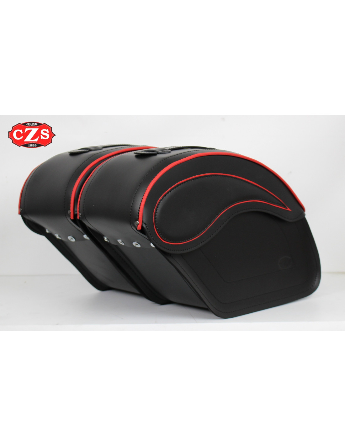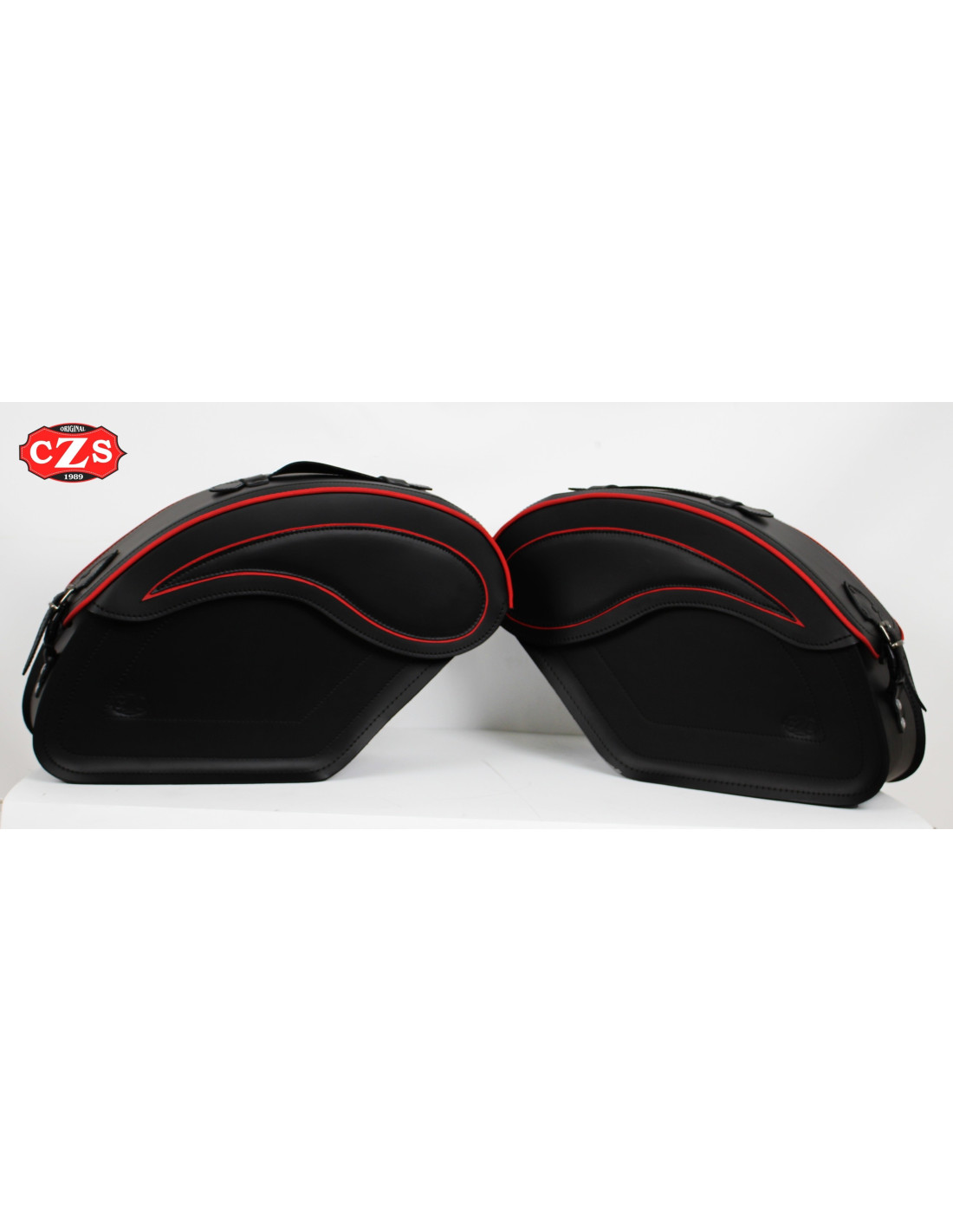 ECLIPSE rigid saddlebags set with profiles in red. (Two suitcases) made with reinforced cow leather.