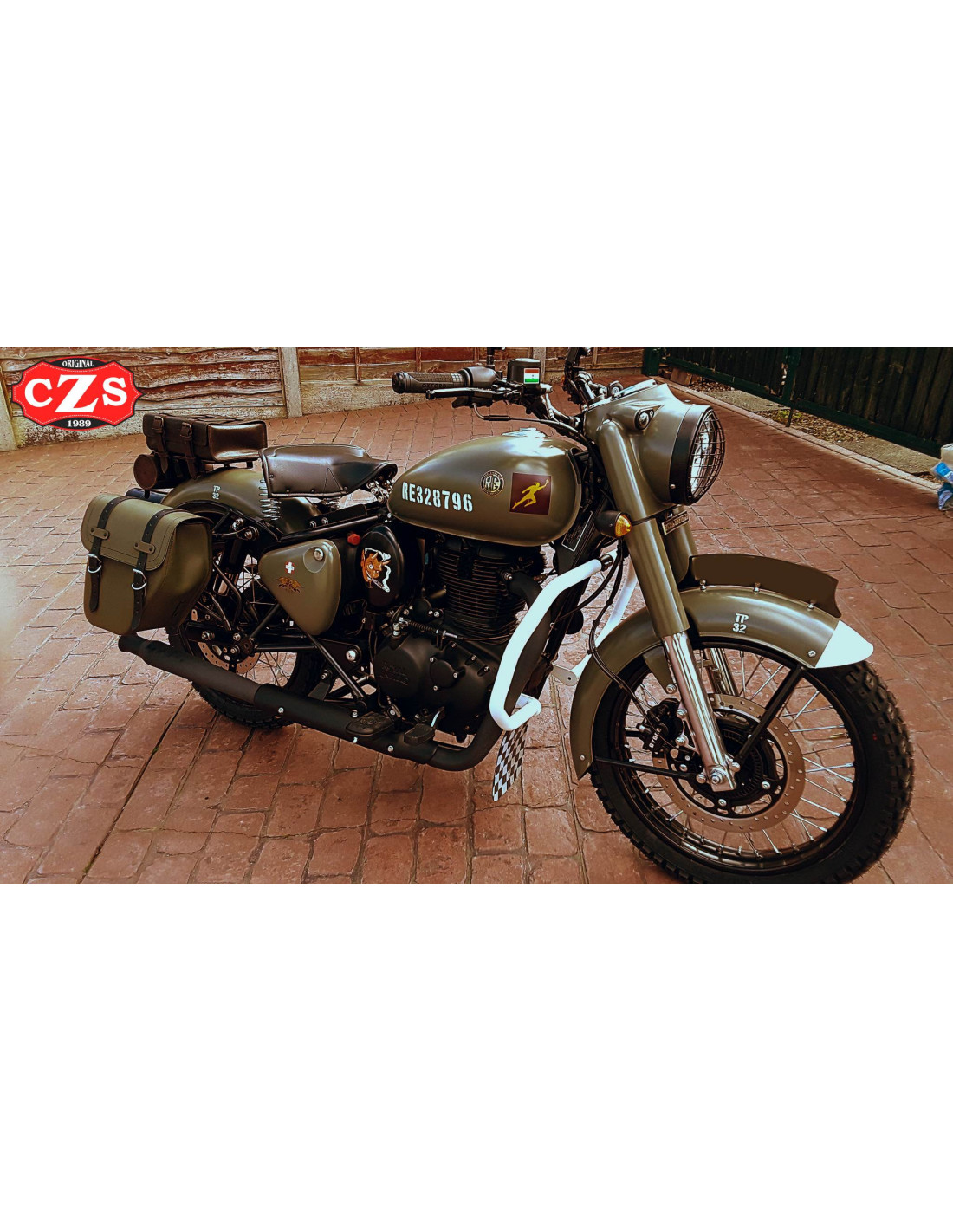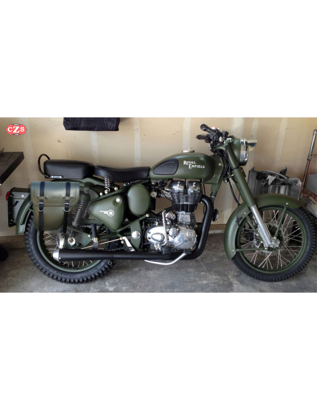 Adaptable para Royal Enfield - Battle Green 350/500cc, cuero de vaca.