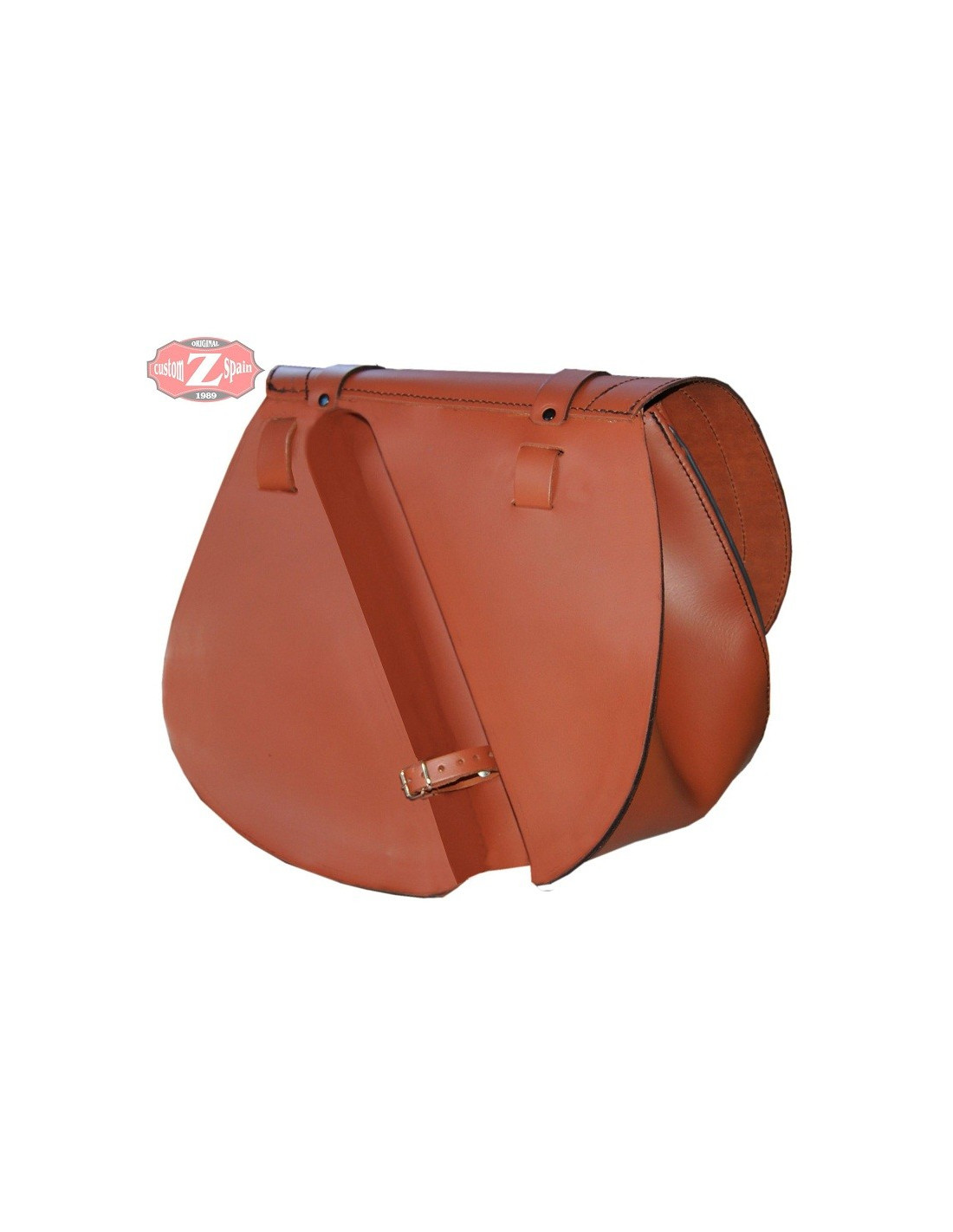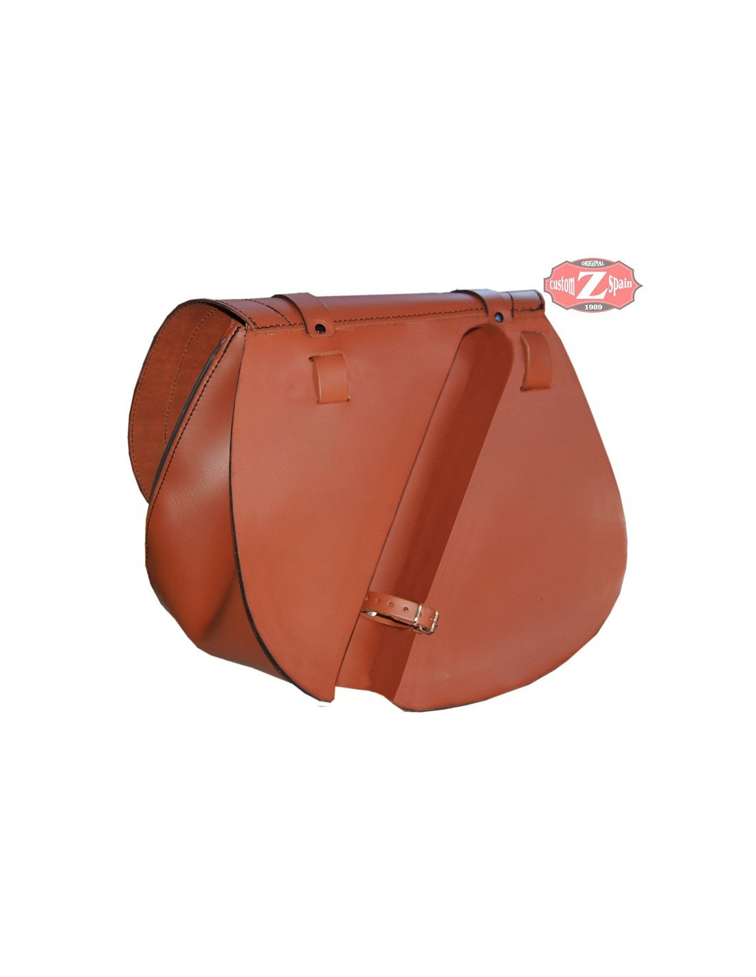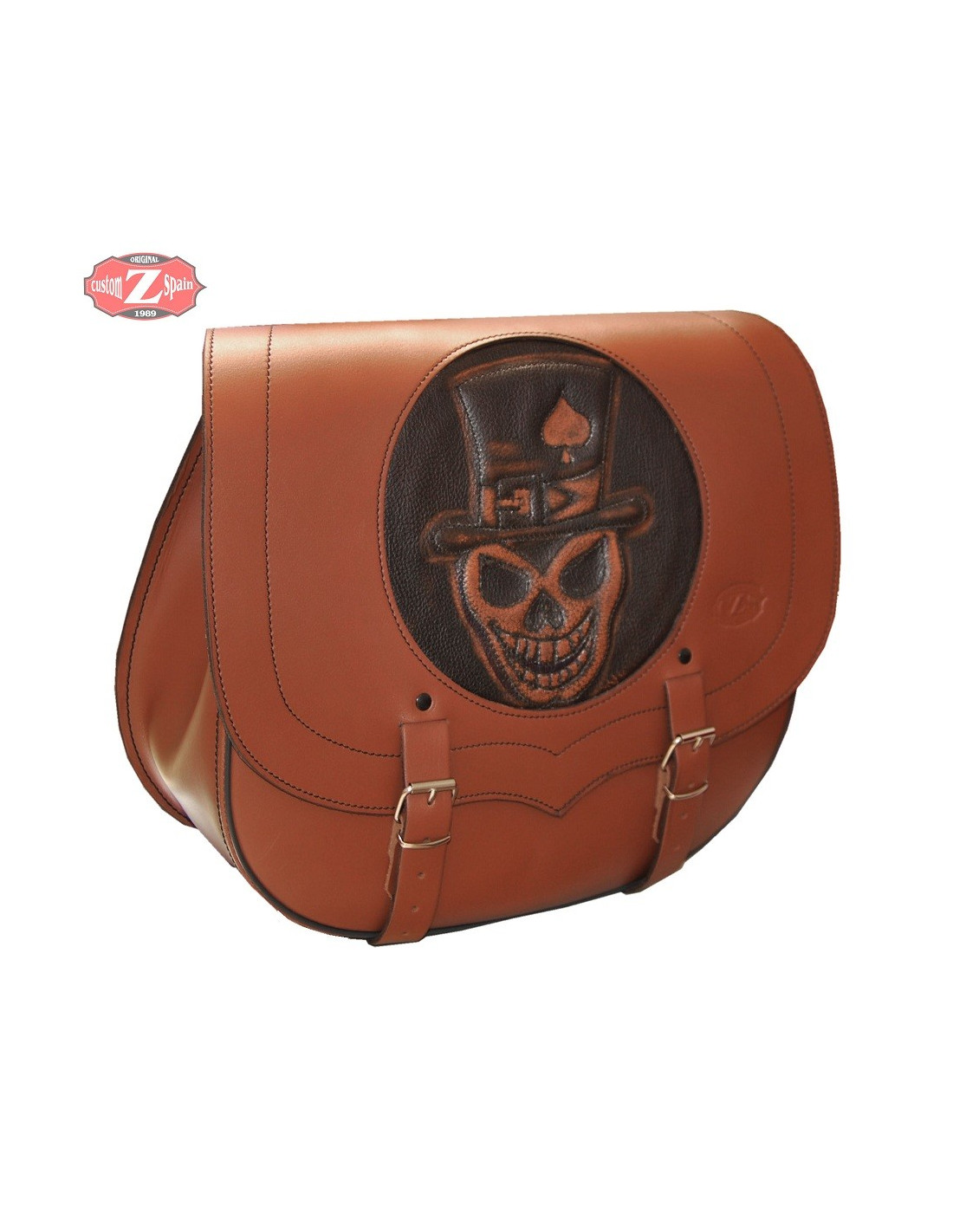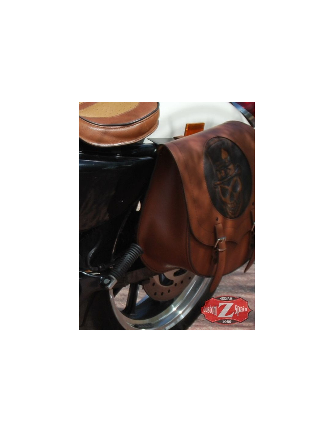 Alforja para Sportster Harley Davidson mod, SPARTA - Skull Hat - Marrón Cuero - Hueco Amortiguador - IZQUIERDA - Específica