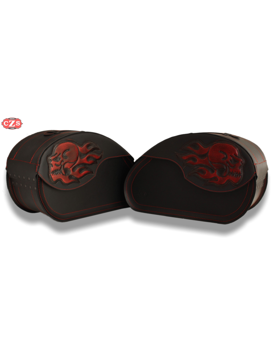 Decoración: Cráneo en llamas y costuras con hilo rojo