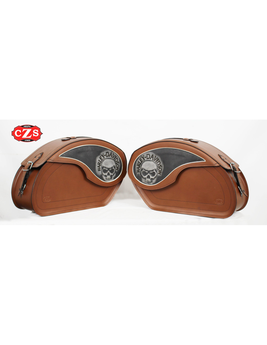 Alforjas Rígidas personalizadas mod, VENDETTA Harley Davidson Skull - Universales - Marrón Cuero