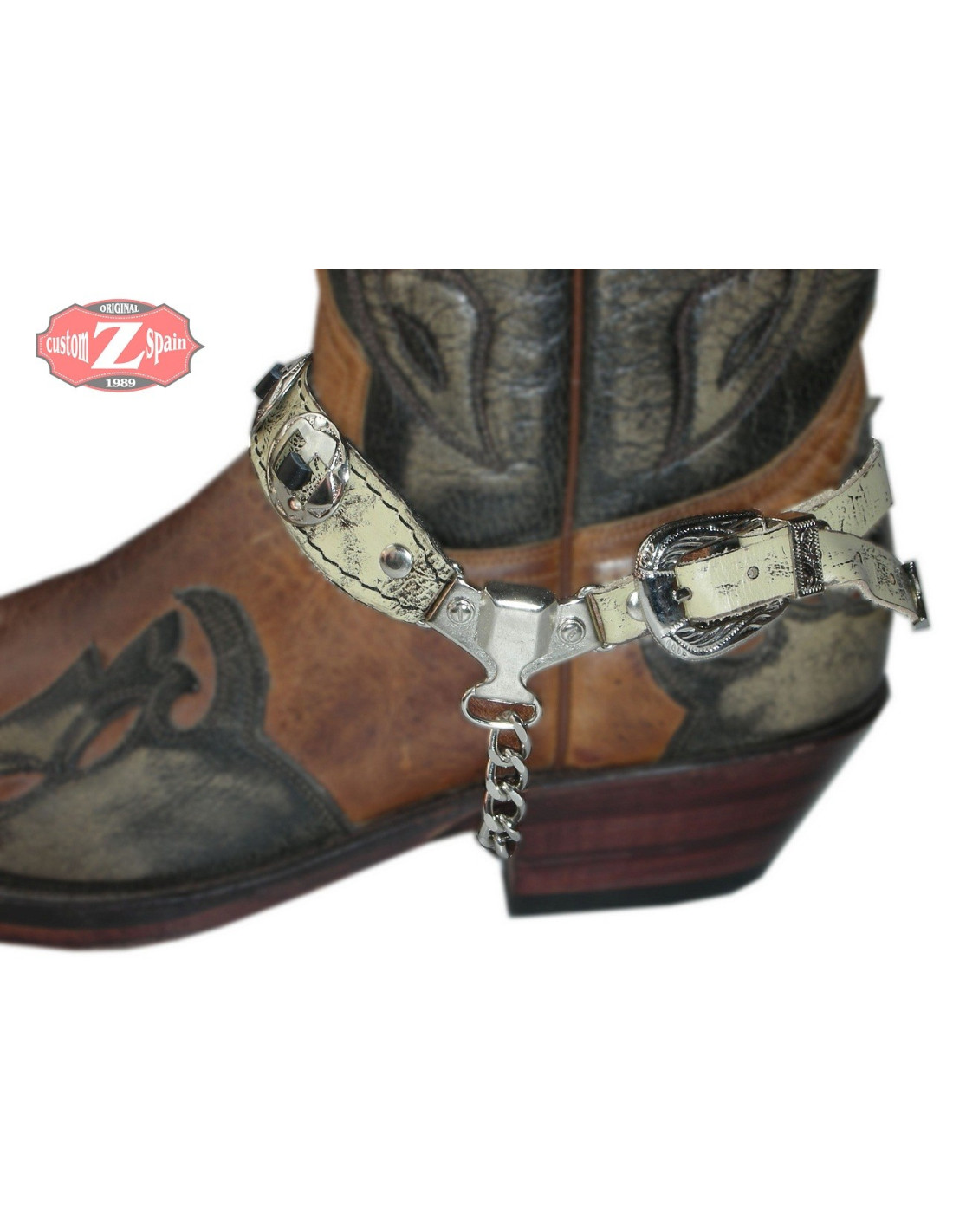 Decoración: 3 conchos, hebillas con punteras y apliques cromados