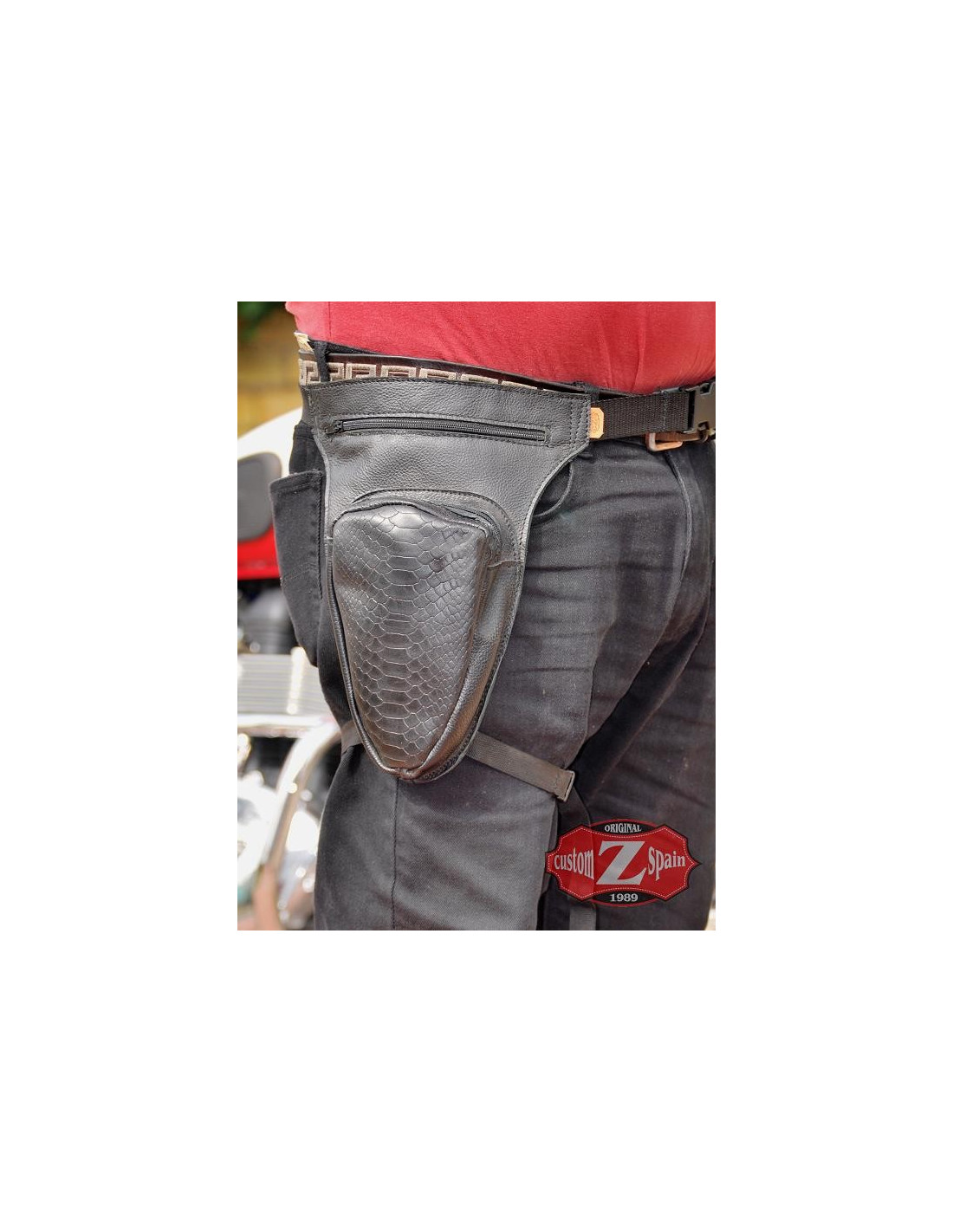 Bolso de piel para colocar a la altura del muslo