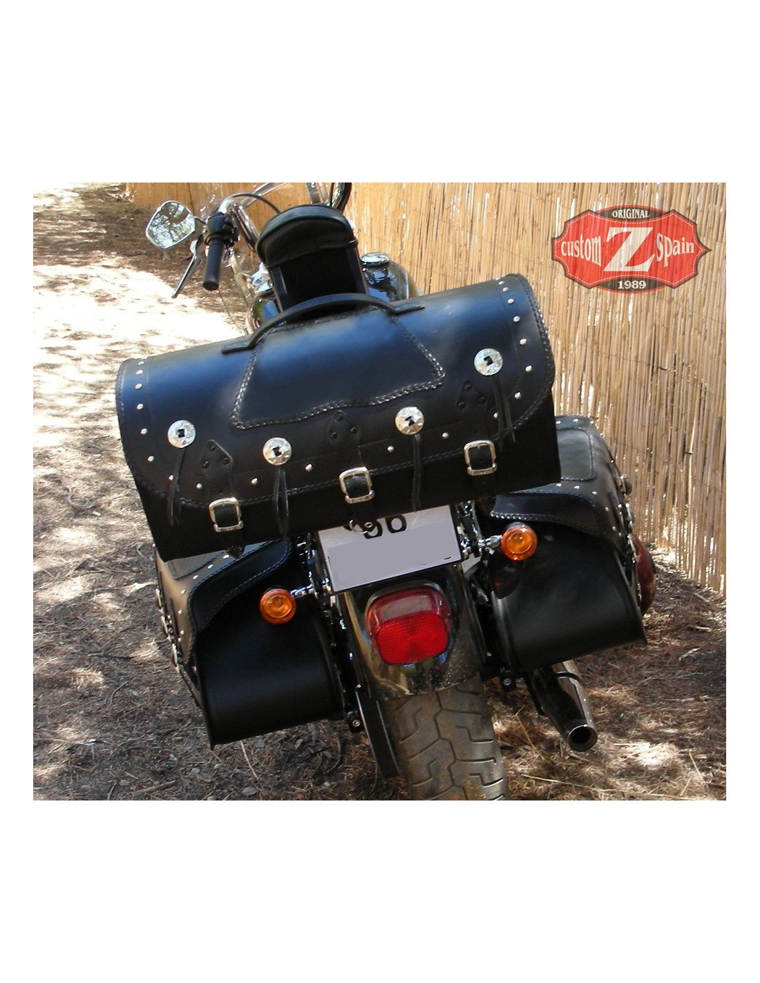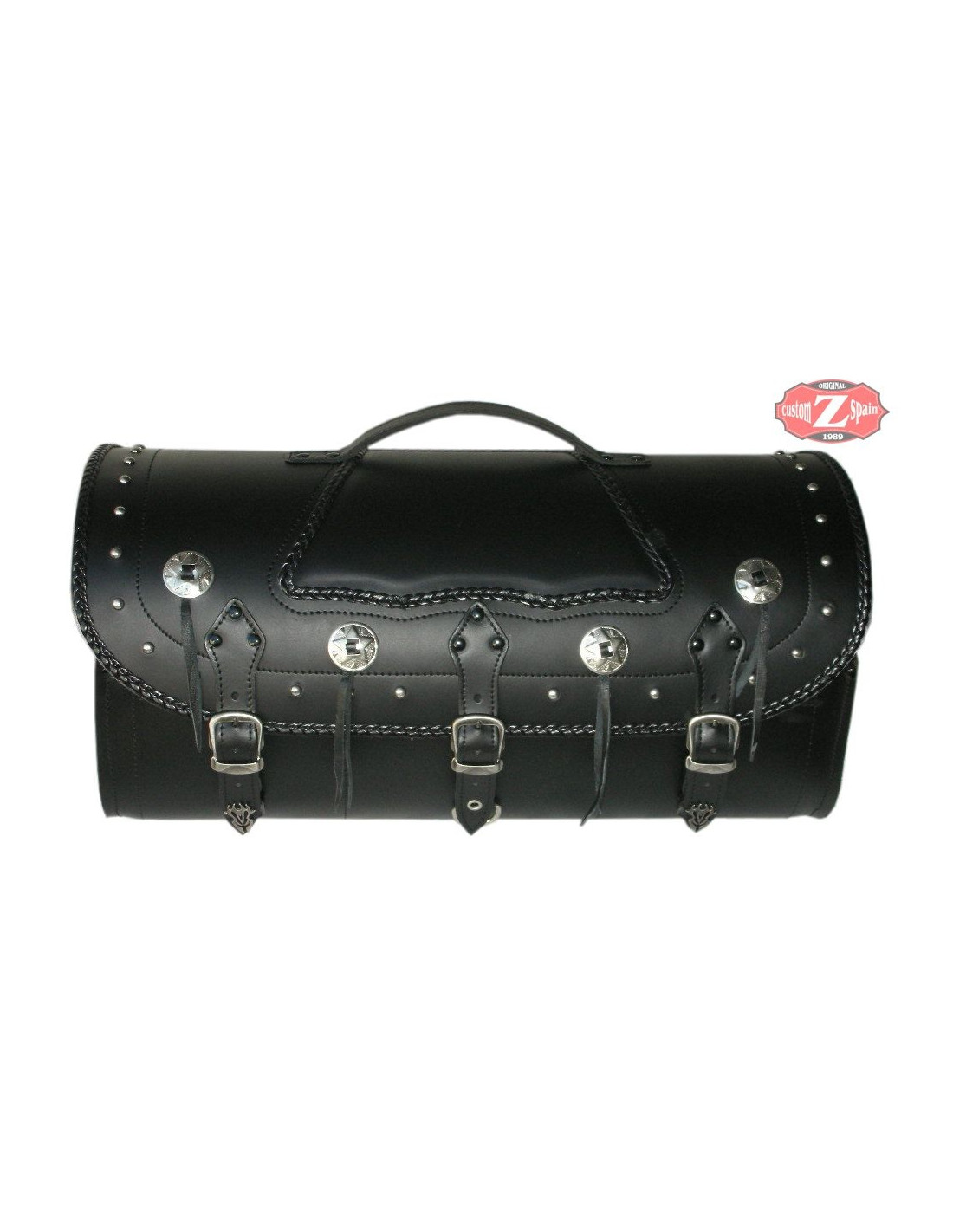 Décoration : profils tressés, 4 conchos et franges, clous sphériques chromés, boucles chromées sur les embouts
