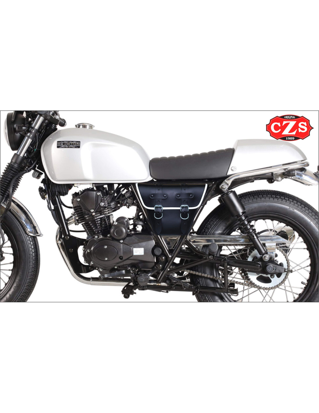 Sacoche pour motos classiques mod, MARBELLA style Cafe Racer - UNIVERSEL - Noir/Blanc