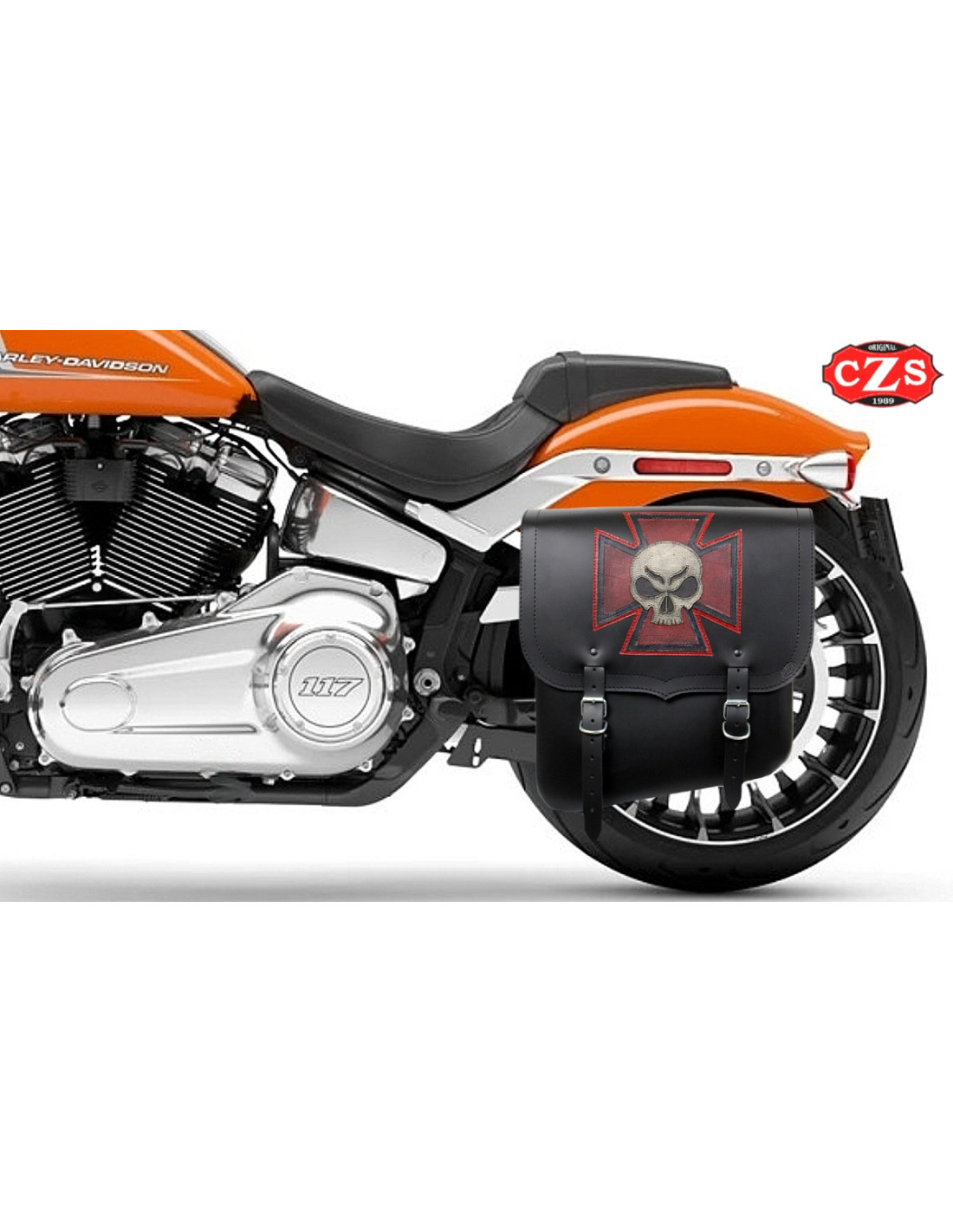 TRUENO Custom Swingarm Sacoche "Maltese Cross Skull" - pour Softail Harley Davidson - Noir