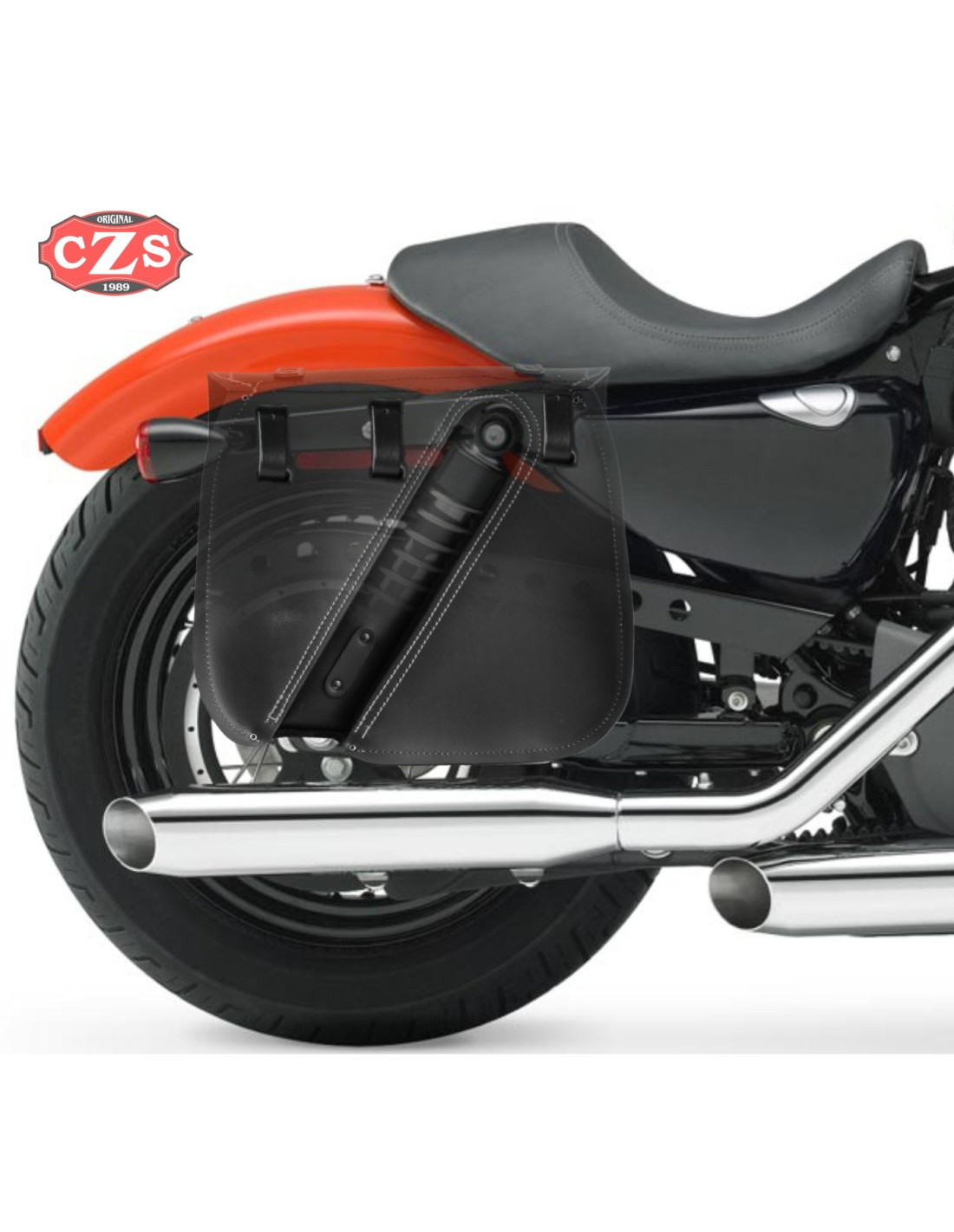 Sacoche pour Sportster Harley Davidson - Creuse pour accueillir l'amortisseur. Mod, fil orange ULISES - spécifique - Droite