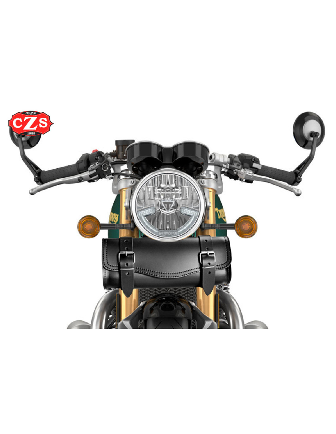 Sacoche à outils en cuir - Triumph Thruxton 900/1200 - Rouleau plat basique - Noir