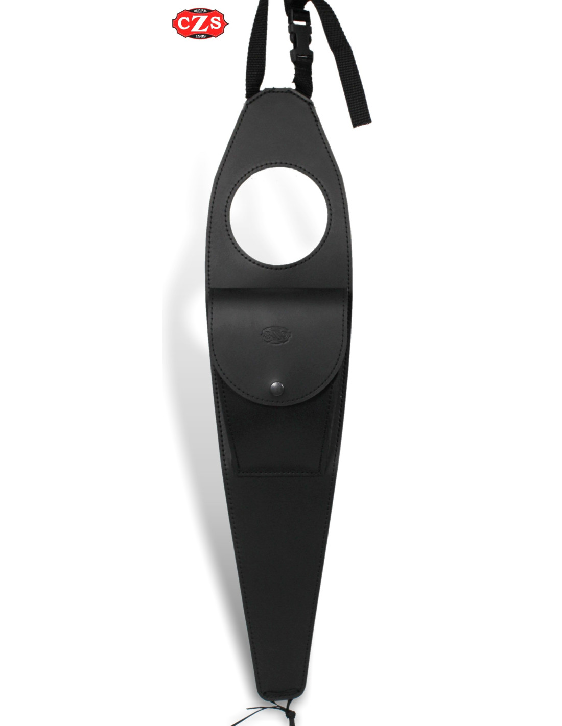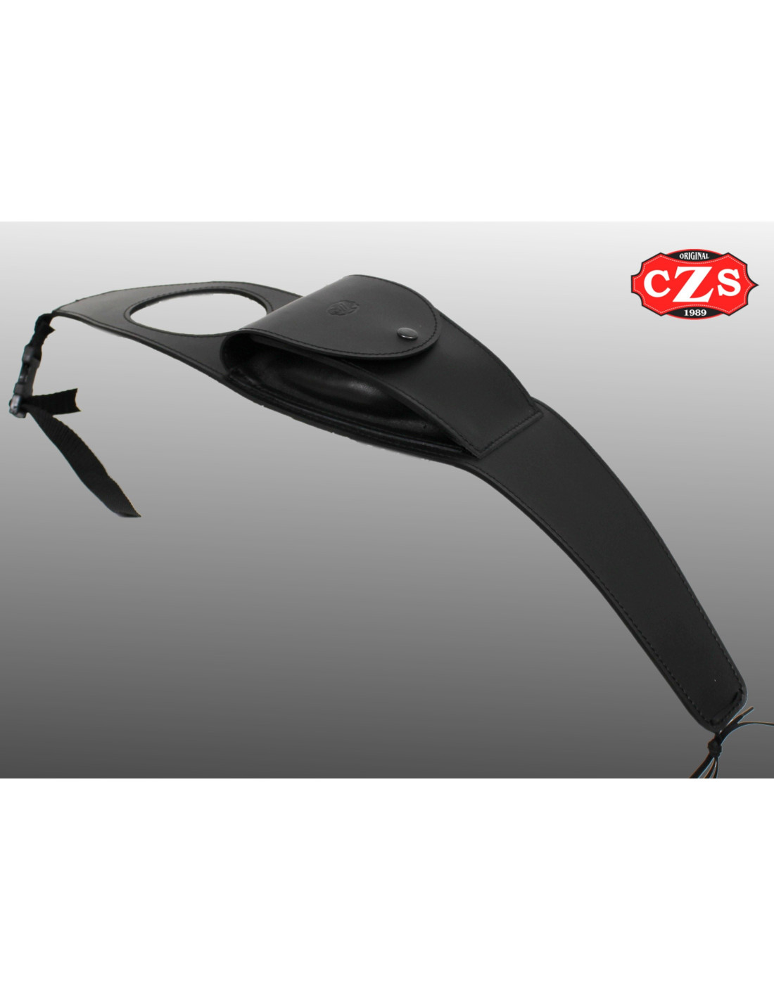Pannello per serbatoio benzina con tasca realizzato in pelle bovina con protezione antigraffio per il serbatoio.