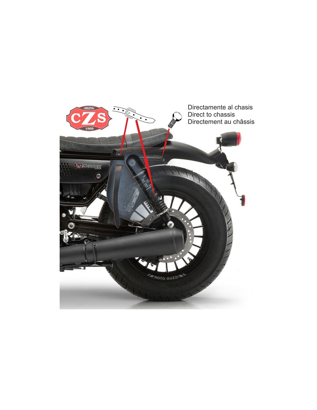 Specifico per Guzzi V9 Bobber e V9 Roamer, con foro per ospitare l'ammortizzatore.