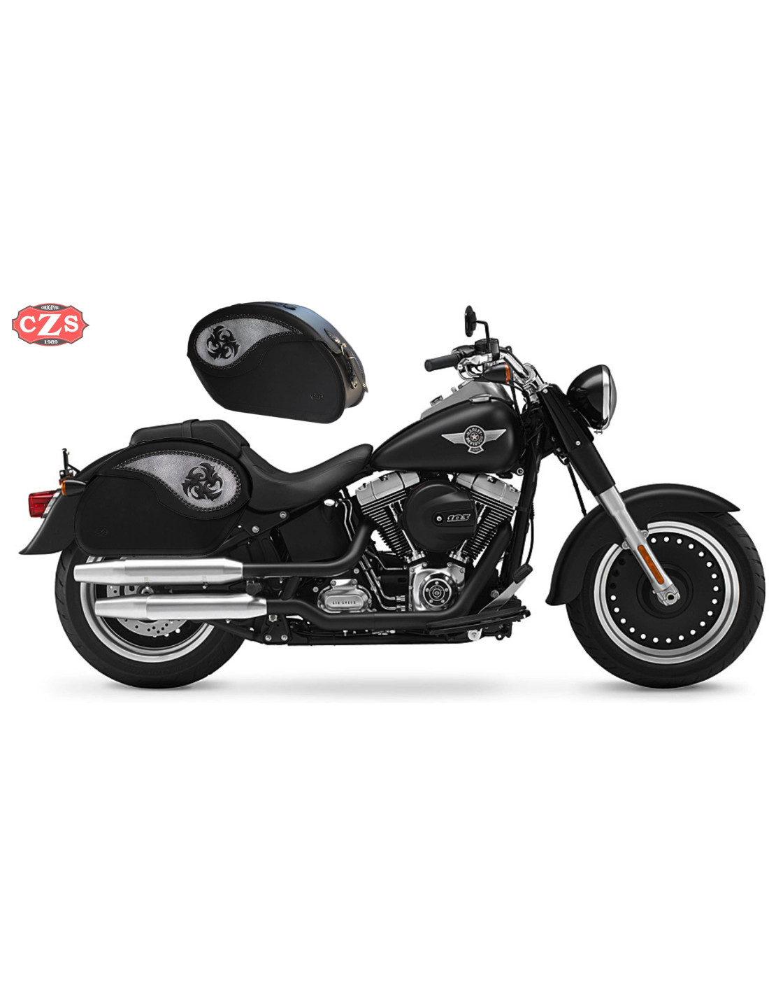 Borse laterali rigide per Fat Boy Special Softail Harley Davidson mod, VENDETTA - Aspas tribali -