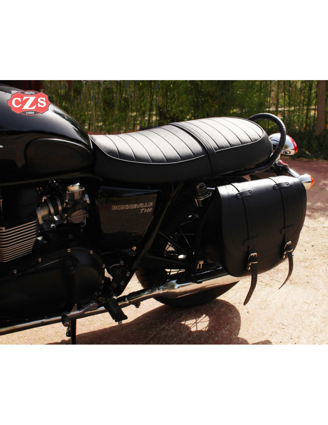Set di bisacce adattato al supporto originale Triumph Bonneville T100 / T120, pelle di mucca
