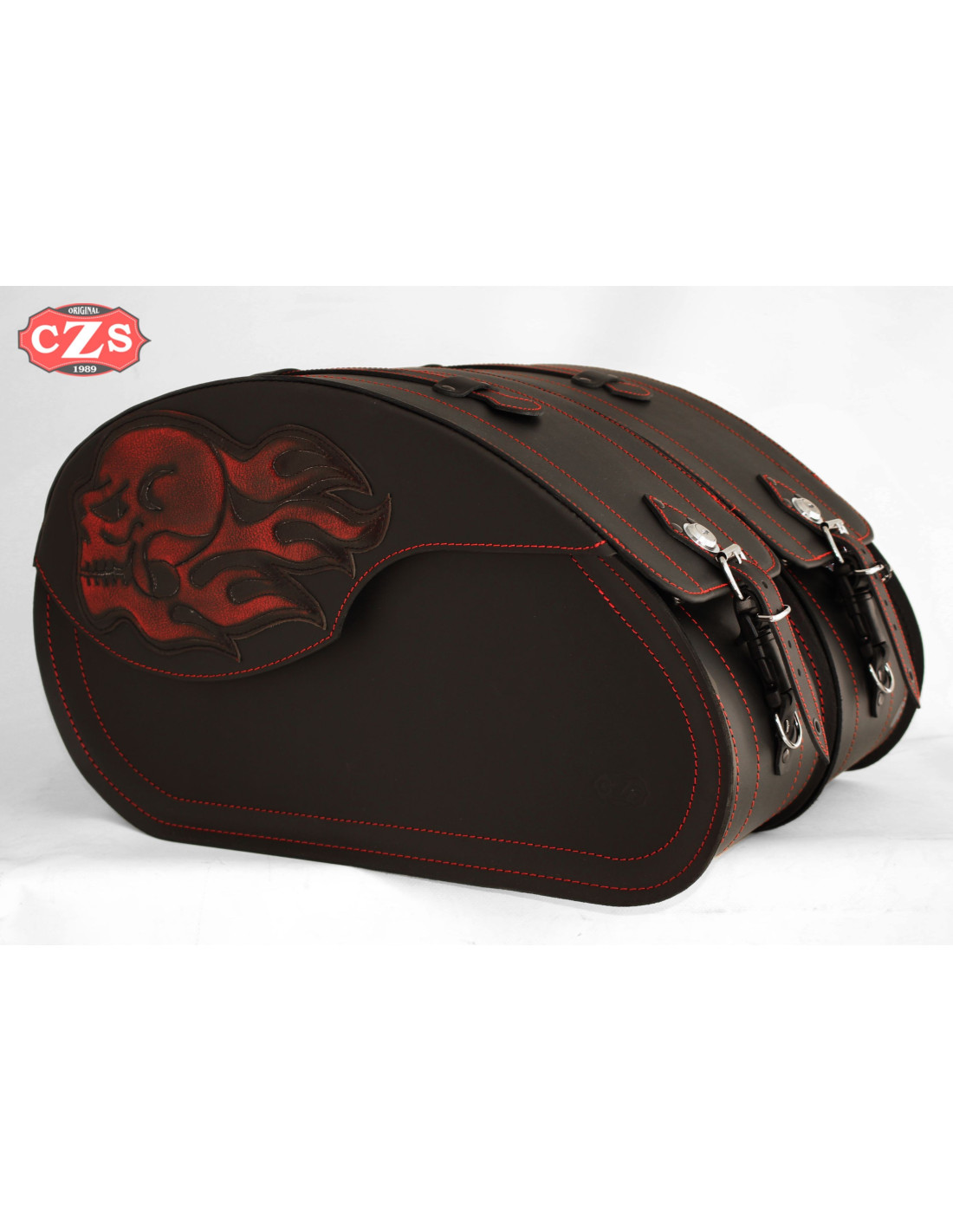 Borse laterali rigide mod, NAPOLEÓN - Teschio in fiamme (filo rosso) - UNIVERSALE