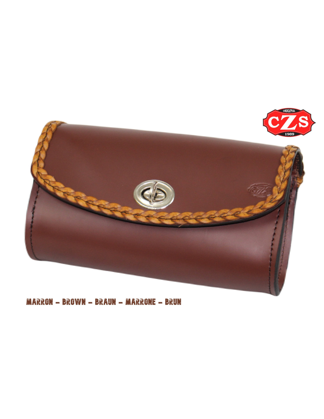 Borsa universale in pelle per parabrezza, ideale per tutti i tipi di moto custom e classiche.